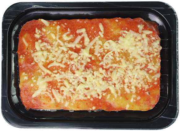Ingredientes: farinha de milho, caldo de legumes (cenoura, cebola, salsão, louro, alecrim, salsa e cebolinha), tomate, cebola, queijo colonial, queijo mozzarela, queijo parmesão, óleo de soja, sal, manteiga, salsa, cebolinha, manjericão, pimenta do reino e açúcar.