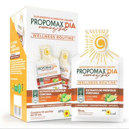 O PROPOMAX® Dia Morning Shot é um extrato de própolis EPP-AF® iCaps com cúrcuma, gengibre e limão, o que faz dele o produto ideal para auxiliar nos cuidados diários com sua saúde. Contando com todos os benefícios da própolis e uma combinação potente de ingredientes, PROPOMAX® Dia Morning Shot possui o sabor levemente picante do gengibre e o cítrico do limão. Sua apresentação em sachê é a solução prática que você precisava para começar seu dia!